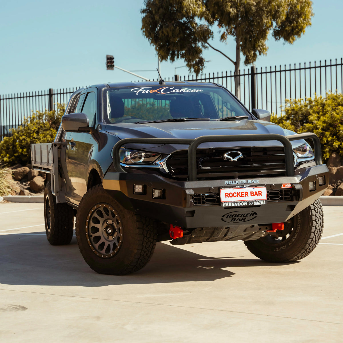 Designed with a complete bumper replacement style, the Rocker Bar seamlessly blends with your Mazda BT-50's front end, elevating its look and providing unmatched defense. Enjoy added convenience and flexibility with the Rocker Bar's dual Aerial Mounts