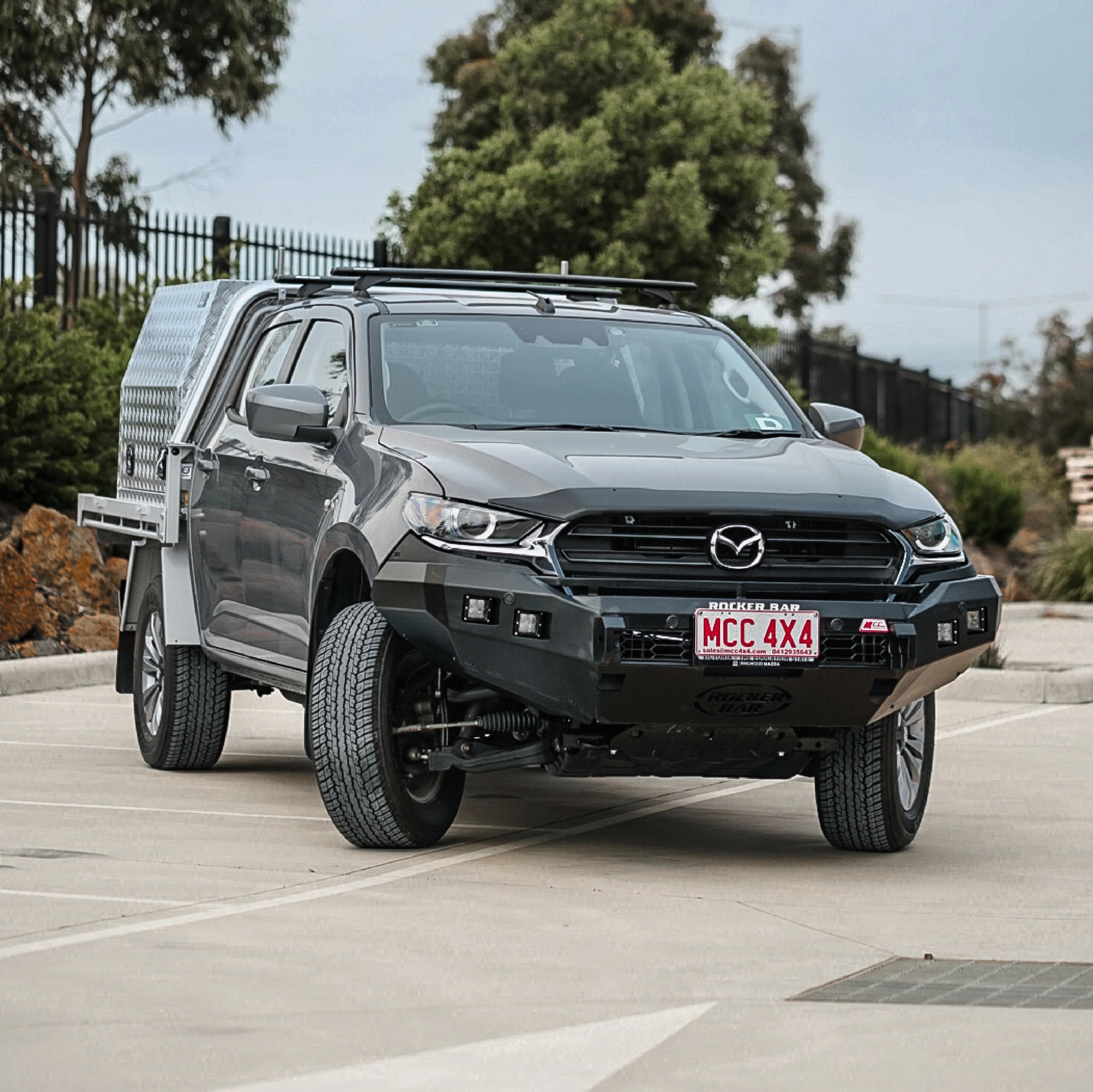 Engineered specifically for die-hard off-road lovers, the Rocker Bar includes 3 Under Protection Plates, Bracket Kit, and Winch Cradle, covering all your needs for both functionality and style for your Mazda.