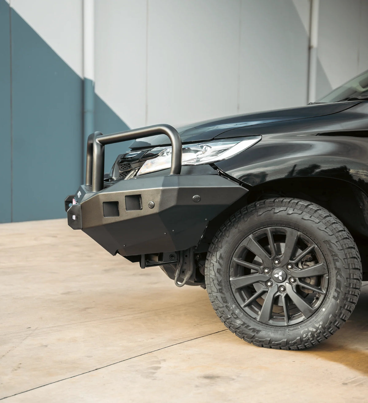 Crafted with strong 3-5mm steel plate, this bar is built to handle tough off-roading and protect your Pajero. Its full bumper replacement design seamlessly blends with your front end, adding a touch of style and maximum defense.