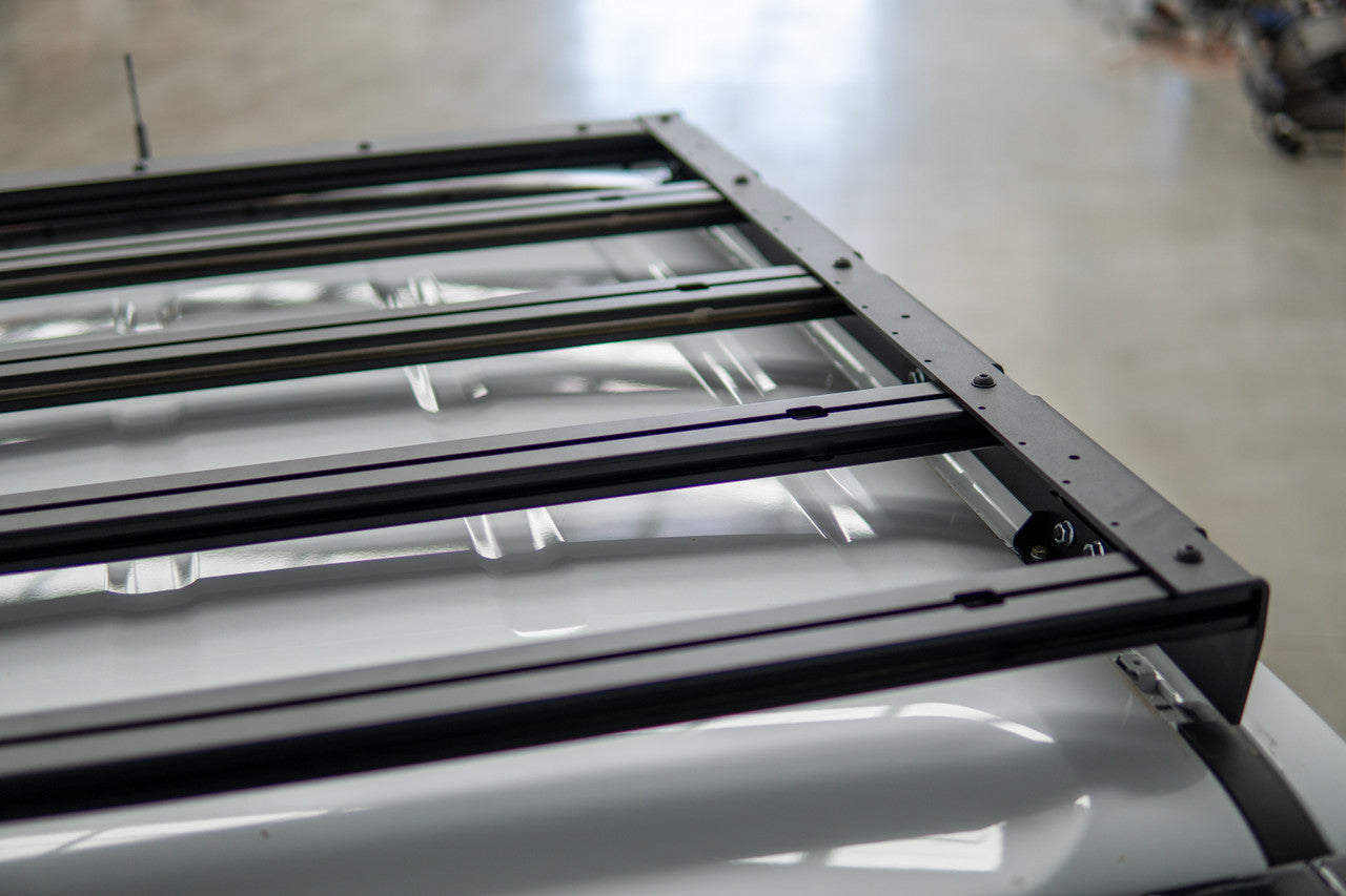 And there's more - this lightweight aluminium rack is a breeze to assemble and has a sleek matte black finish. T-Slot slats allow for easy customization with standard M8 nuts and bolts, and it even comes with an optional wind deflector that can hold a 42" LED light bar!