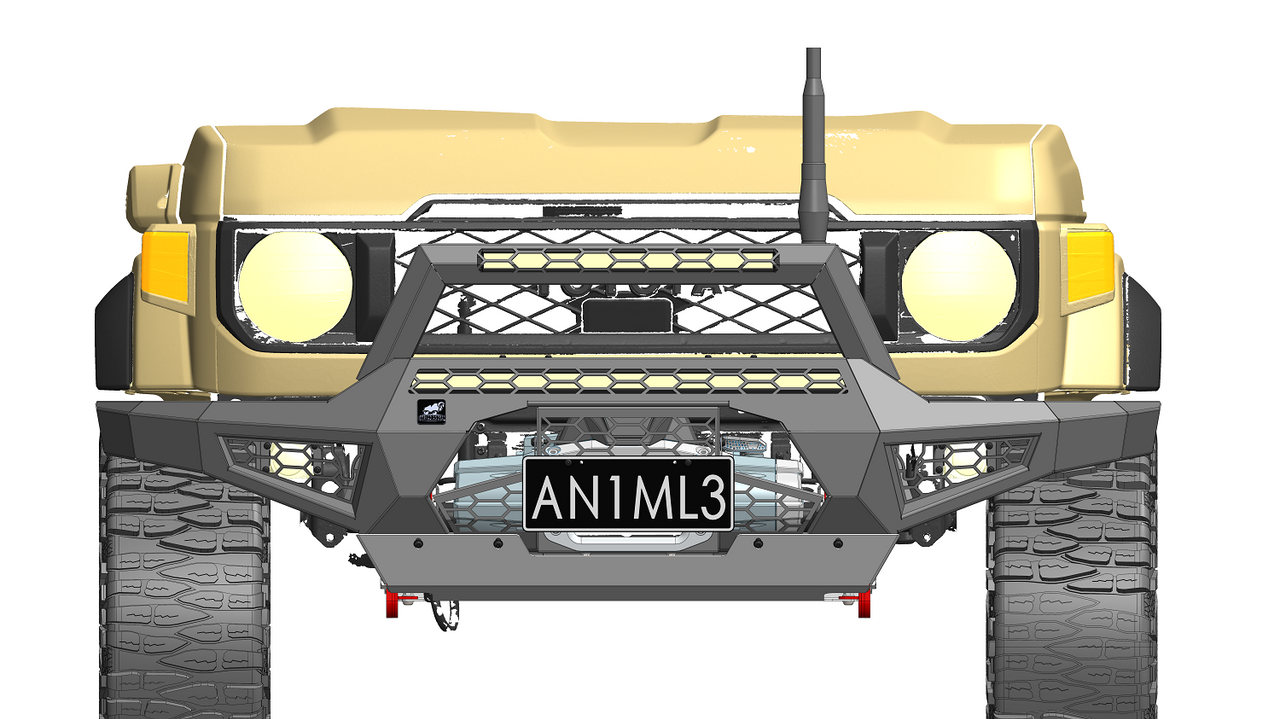 Transform your Offroad Animal Predator bar with this MY24 face lift Toyota Landcruiser 70 series Stealth Hoop. It's equipped with 2 antenna mounts, holds 20-22" single row LED light bars, and secures easily with 2 M10 high tensile bolts. Plus, it's zinc plated and powder coated matte black (with optional color coding) for a unique and stylish look. And don't worry, it won't interfere with your front grill radar. Get your hoop on!